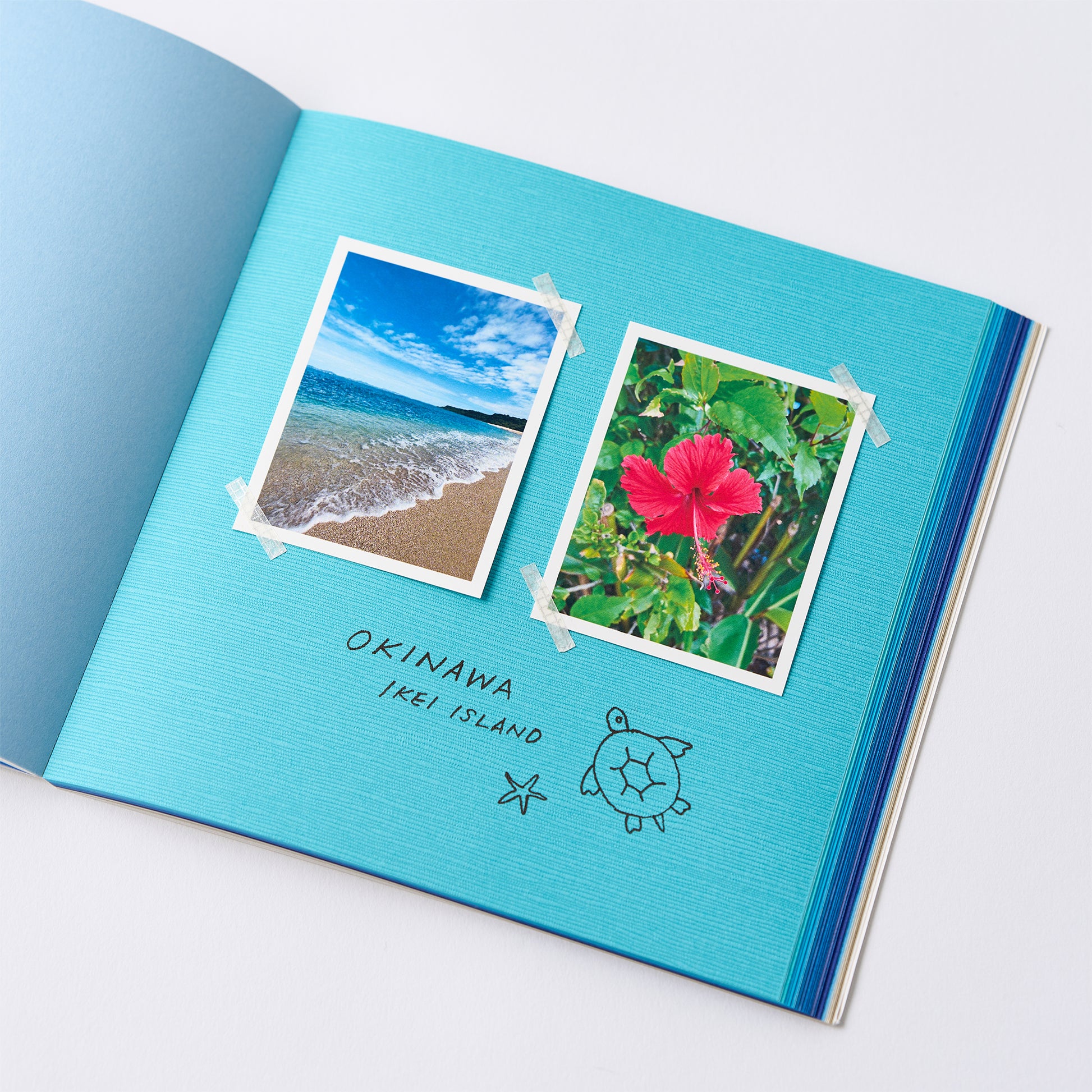 見渡すかぎりの、真っ青な海と空。太陽をあびた水面のさざなみ。寄せては返す波打ち際と、熱い砂。いまにも海の音が聞こえてきそう。