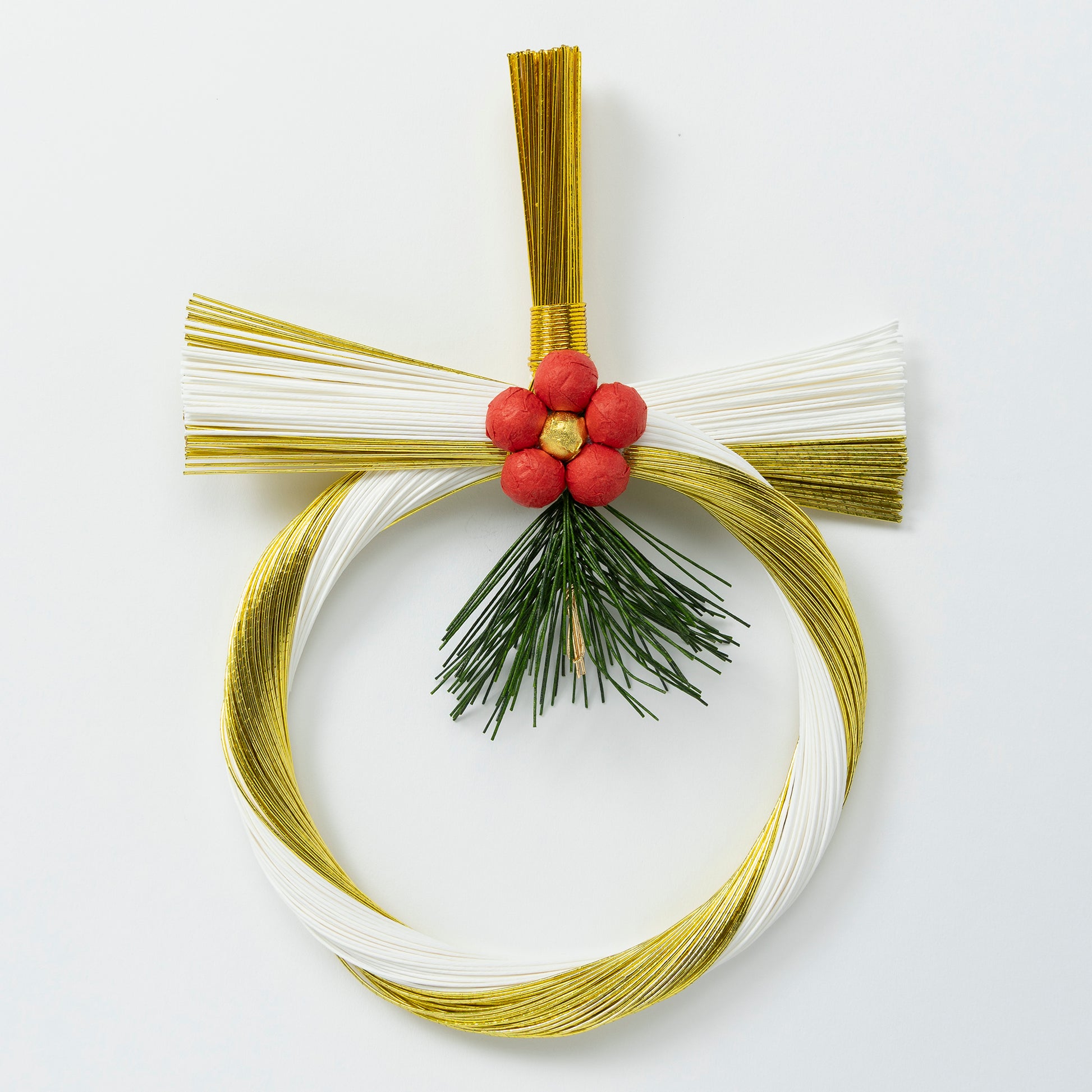 職人が1つ1つ手作りした国産のお飾りです。金白の水引のシンプルなデザインでさまざまな玄関のドアやインテリアに馴染みます。春先に一番に咲く梅は縁起のよいものとされています。