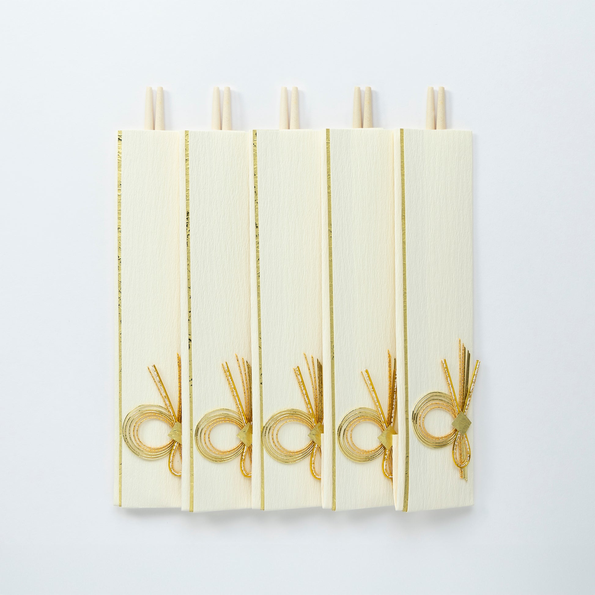 日本製柳丸箸です。縁起のよい金の水引飾りが箸袋に付き、お正月の祝膳や節句などのお祝いごとにご使用いただけます。