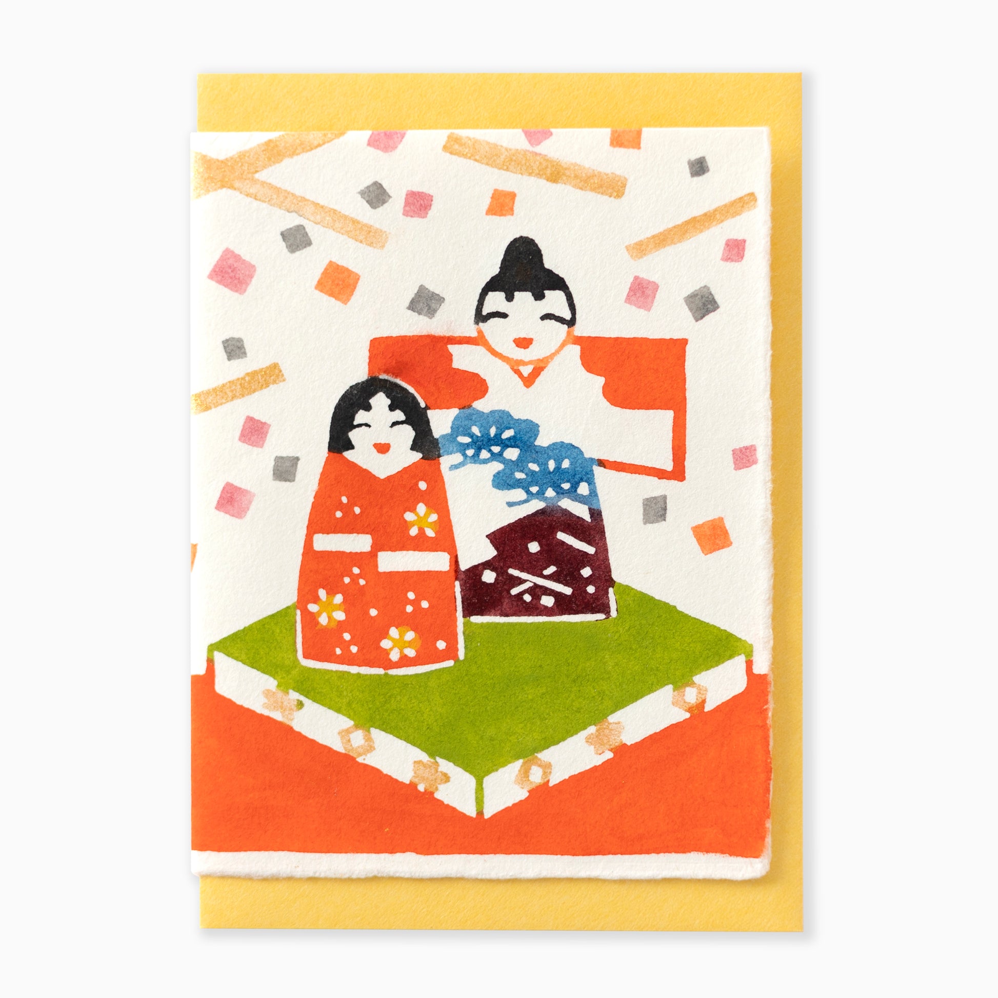 「型染(かたぞめ)」という日本の伝統的な技法を用いて、職人が一枚一枚手染めで絵柄を表現した、和紙のグリーティングカードです。