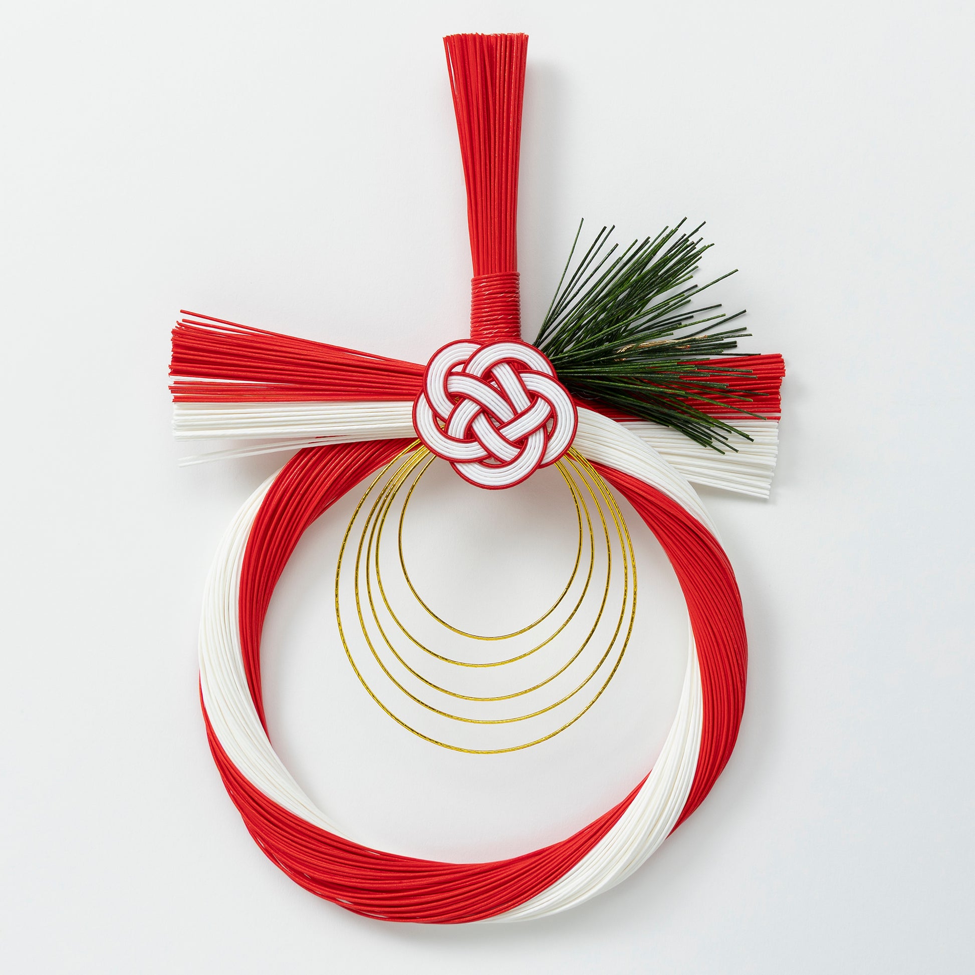 職人が1つ1つ手作りした国産のお飾りです。縁起のよい梅あわじの水引飾りが付き、紅白のシンプルなデザインでさまざまな玄関のドアやインテリアに馴染みます。