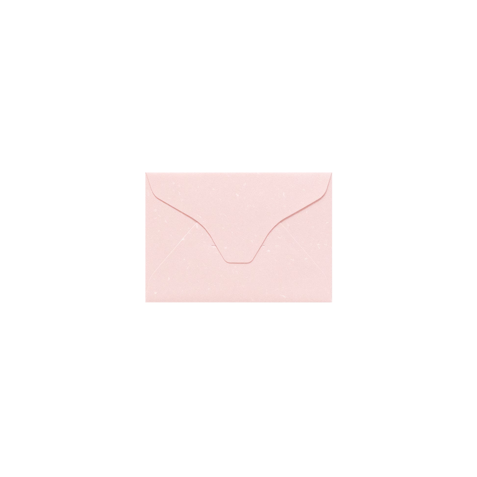 舞い上がる柔らかな羽毛をちりばめた様な、パステル調の紙。淡いピンク色のミニ封筒です。名刺が入るサイズ。