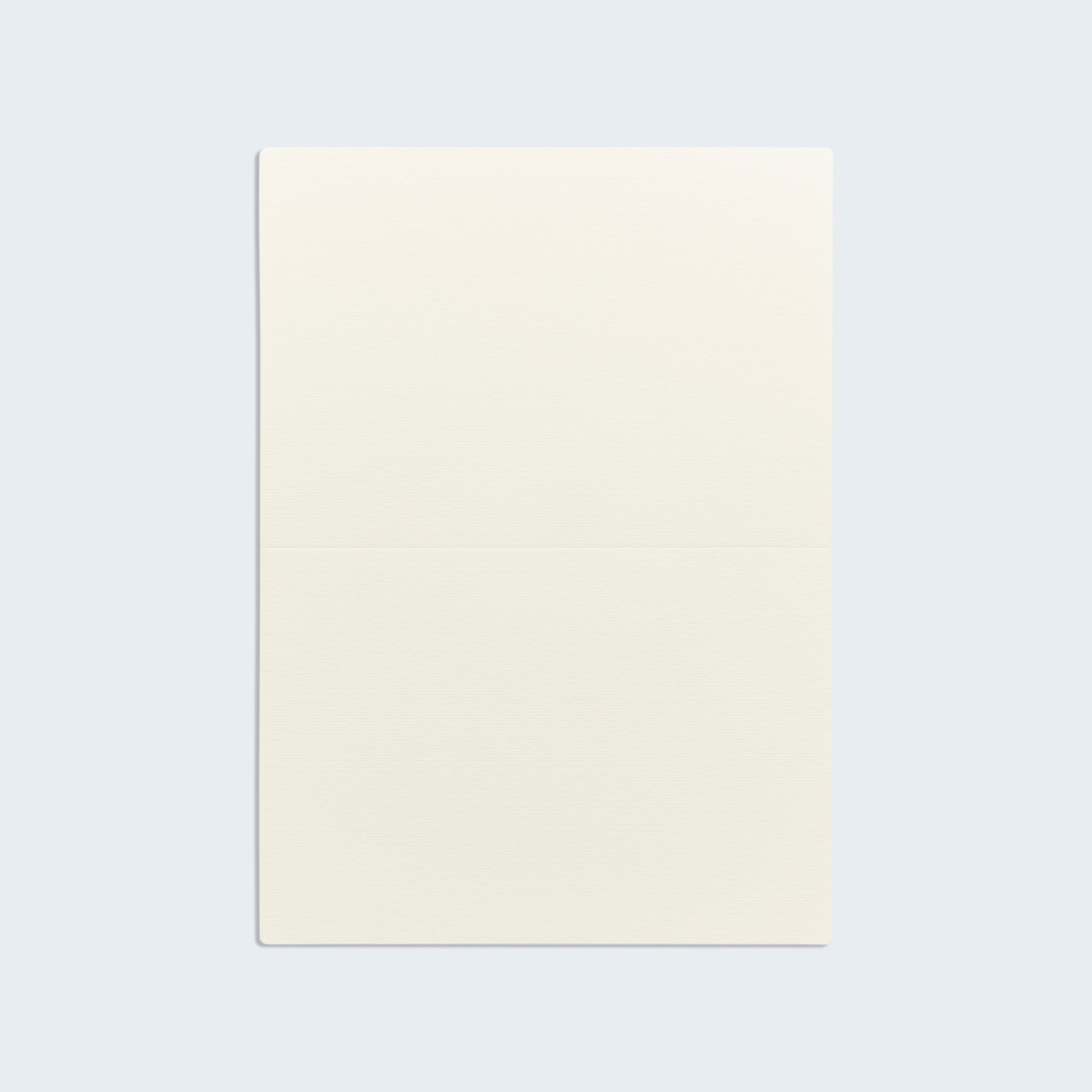 細い線状のフェルトマーク(穏やかな凹凸)で、軽石のような自然な風合いを持つ紙。黄味がかった白のA5カードです。A5中紙、洋2封筒と組み合わせて招待状などに。