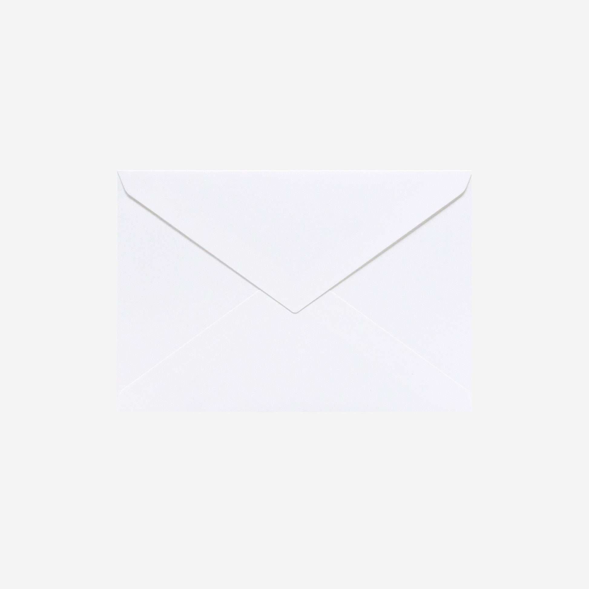 「究極の白」を追求した紙。密度が高くスムースな肌が特徴です。気品のある輝くような白の洋1封筒。A5カードなどと組み合わせて招待状などに。