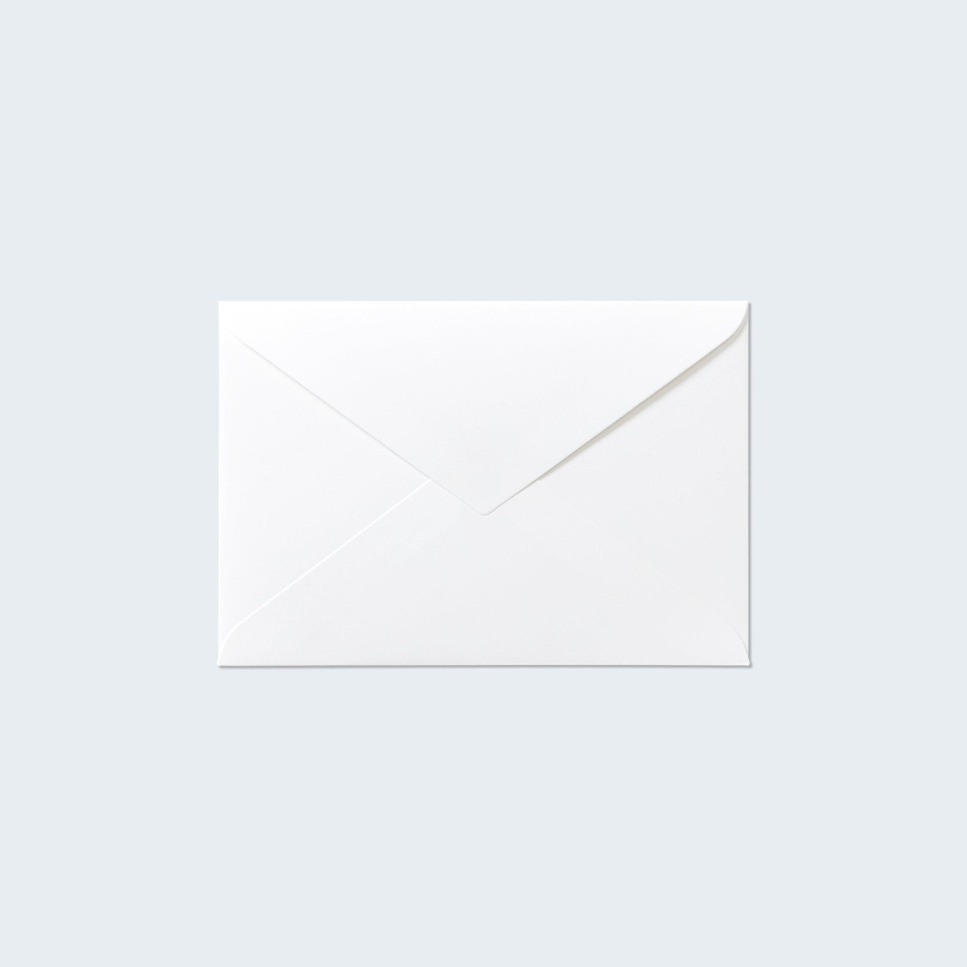 「究極の白」を追求した紙。密度が高くスムースな肌が特徴です。気品のある輝くような白の洋2封筒です。A5カードなどと組み合わせて招待状などに。