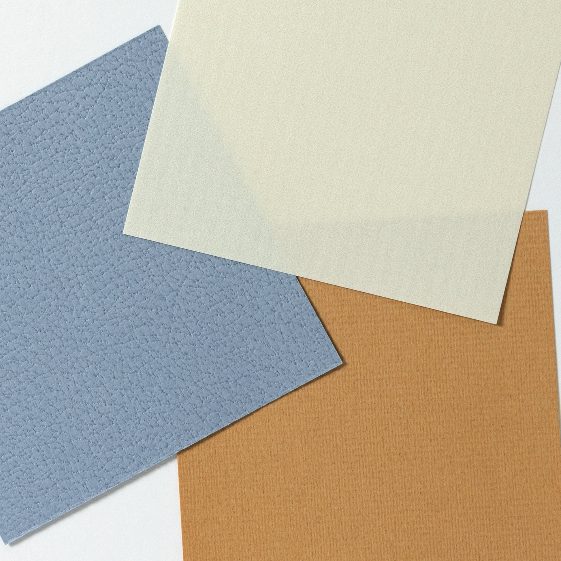 色やテクスチャーが豊富なファインペーパー。 その中には時代に合わせリニューアルする紙や、惜しくも現在庫限りで終了となってしまう色や厚みがあり、 そうした紙は新しい紙の材料へと循環していきます。